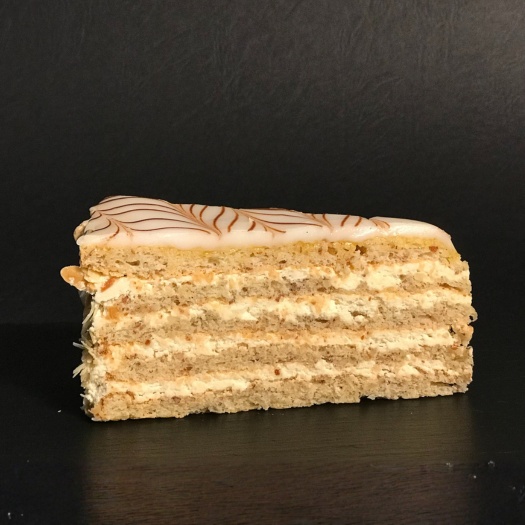 Blätterteigböden, Sahne, Butter, Vanillecreme, Haselnüsse, Marmelade, Zuckerglasur.