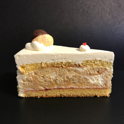 Helles Biskuit, Sahne, Vanillecreme, Marmelade, Rum.