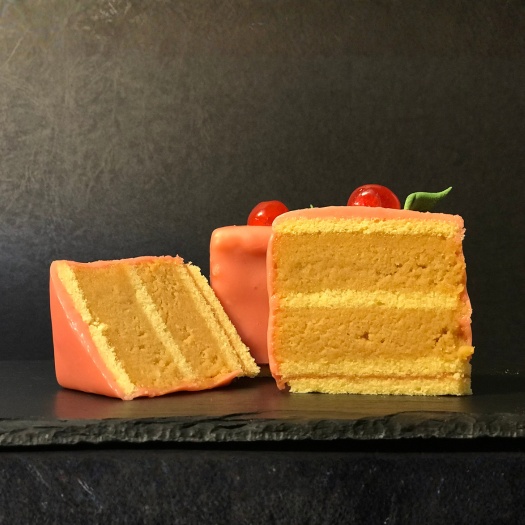 Helles Biskuit, Orangensirup, Marmelade, Rum, Zuckerglasur.